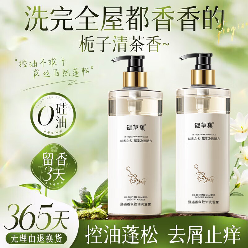 谜草集山茶花香水洗发水沐浴露护发素洗发膏持久留香男女大容量1200ml 白茶清香】去屑止痒洗发水500ml
