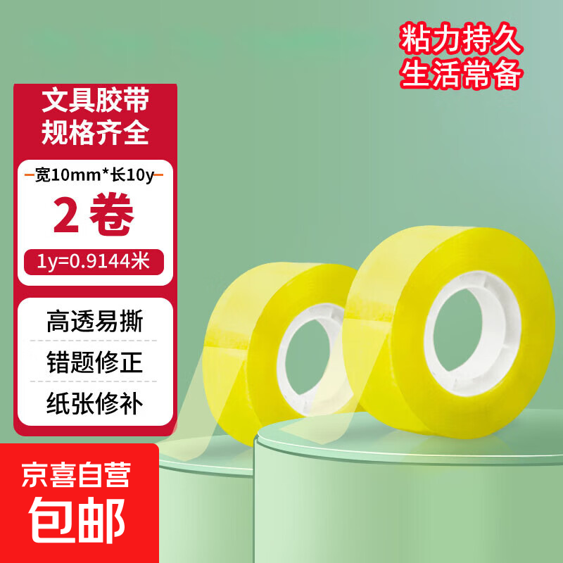 透明胶带封箱胶带胶布学生用品学习文具细窄开学必备不易断办公胶条胶纸办公封口文具小胶带 宽10mm*长10y 【2卷】