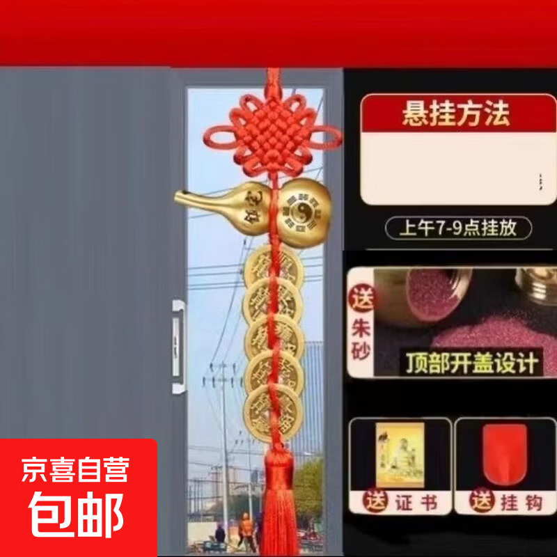 五帝钱葫芦挂件门对门真品朱砂大门卧室窗户铜钱挂门物件黄铜钱串 1串【纯铜葫芦五帝钱】真铜