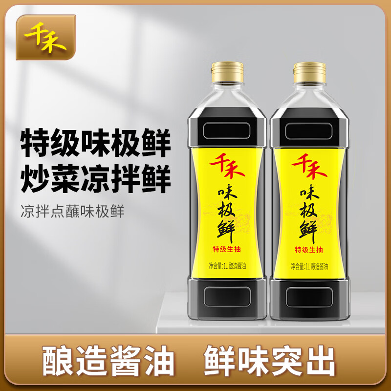 千禾 酱油 味极鲜1L-1 特级生抽酱油 炒菜提鲜 凉拌炒菜 2瓶