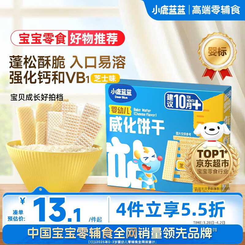 小鹿蓝蓝婴幼儿威化饼干 芝士味 婴幼儿宝宝零食手指米饼干 39g
