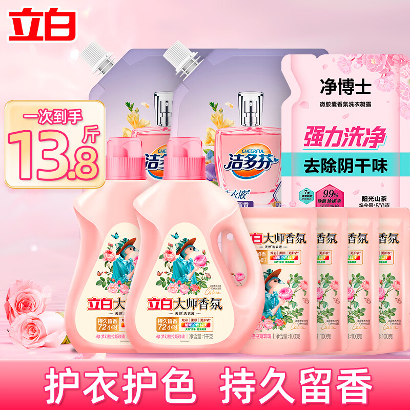立白大师香氛洗衣液家庭专用洗衣液柔顺护衣纳米护色科技持久留香 大师香氛洗衣组合