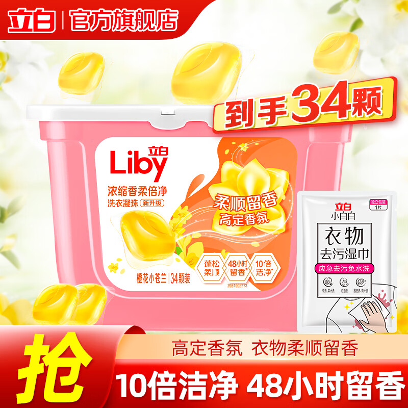 立白洗衣凝珠浓缩倍净洗衣液 持久留香长效抑菌防串色香水型 高定香氛凝珠34颗+去污湿巾