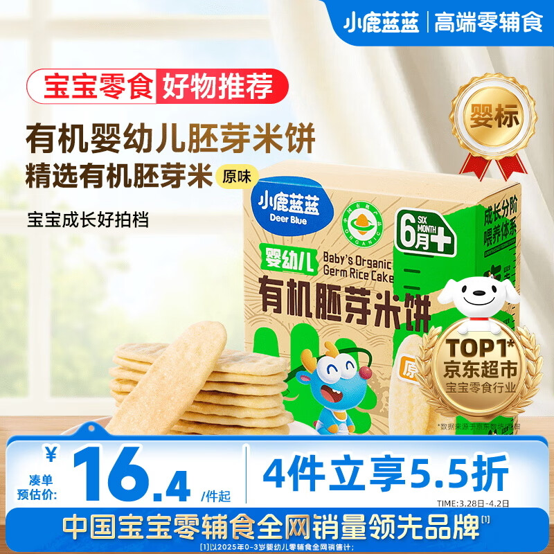 小鹿蓝蓝婴幼儿有机胚芽米饼宝宝儿童零食磨牙饼干胚芽米饼/原味/41g