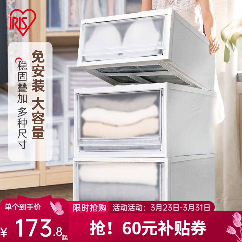 爱丽思(IRIS)园艺花架花盆抽屉式收纳箱透明整理箱叠加收纳柜子储物箱百纳箱丝 59L【BC500D】白色 三个装