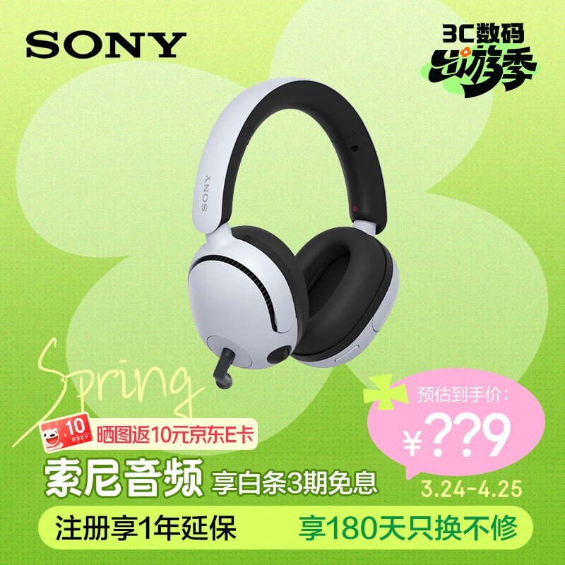 索尼(SONY)INZONE 英纵 H5 轻量化头戴式无线电竞游戏耳机 360空间音效 PS5理想搭档 适用三角洲行动 白色 WH-G500