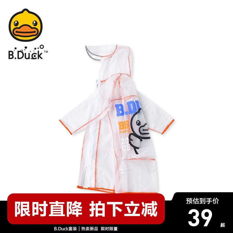 B.Duck小黄鸭儿童雨衣男童全身幼儿园小童雨披女孩宝宝卡通防水服 白色 M
