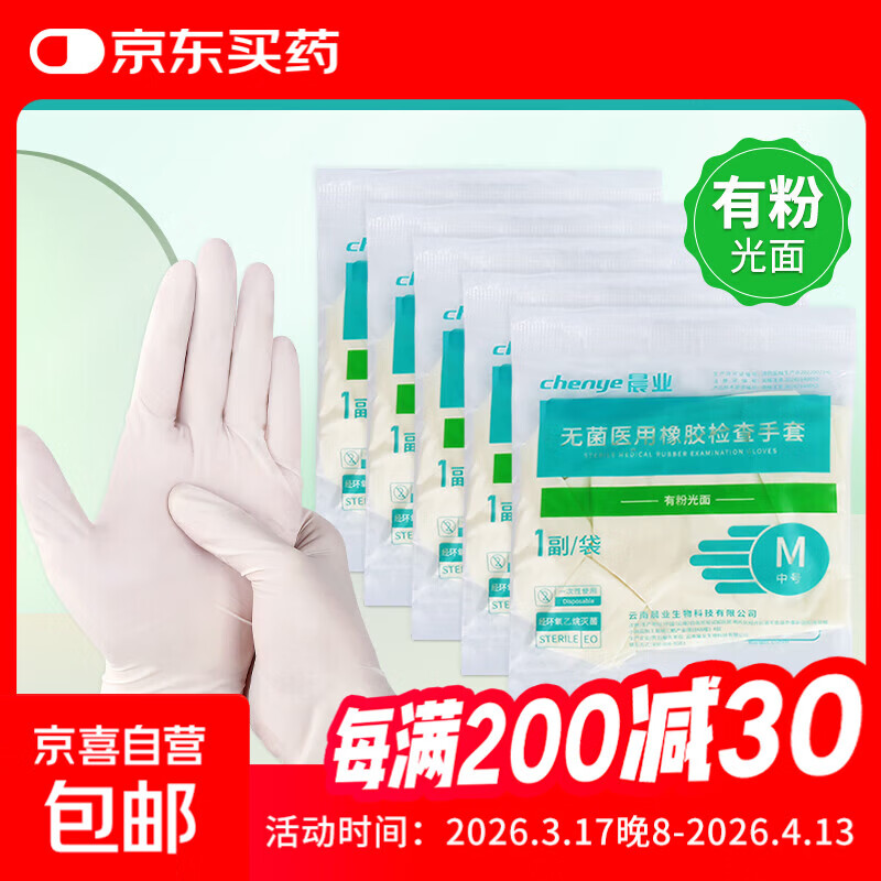 医用手套一次性无菌橡胶医护用外科手术检查乳胶加厚防护单独包装 1双 医用有粉灭菌 L