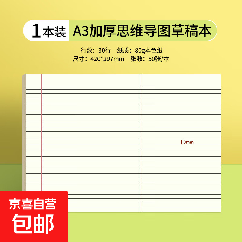 a3思维导图草稿纸可撕横版学习纸背单词纸写字纸美式工作笔记纸双面加厚横线信纸本 A3思维导图【1本装】 白色