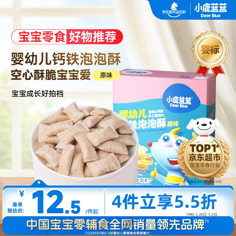 小鹿蓝蓝 婴幼儿钙铁泡泡酥小饼干原味35g 宝宝饼干儿童饼干零食8个月+