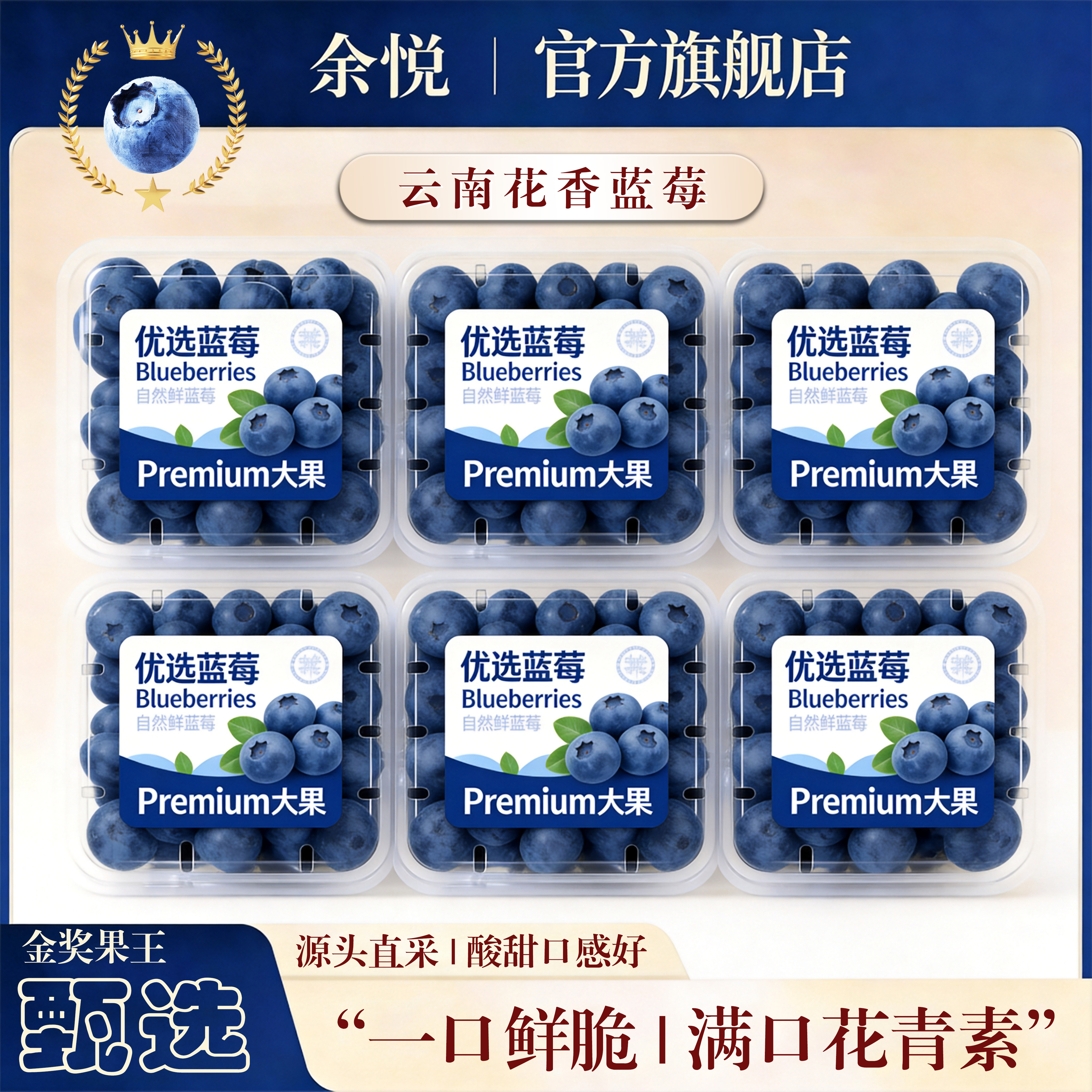 余悦云南蓝莓【多地次日达】现摘国产高山花香蓝莓新鲜水果整箱送礼 4盒【单果15mm+】125g/盒(净100g)普快