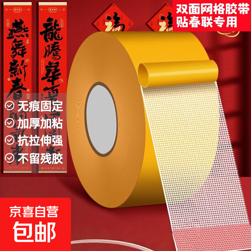 布基网格双面胶带高粘性无痕强力胶贴窗户门吸DIY手工婚庆婚车布置家用窗花春联对联加厚不残胶 【酒店 婚庆 展厅】宽2厘米*5米