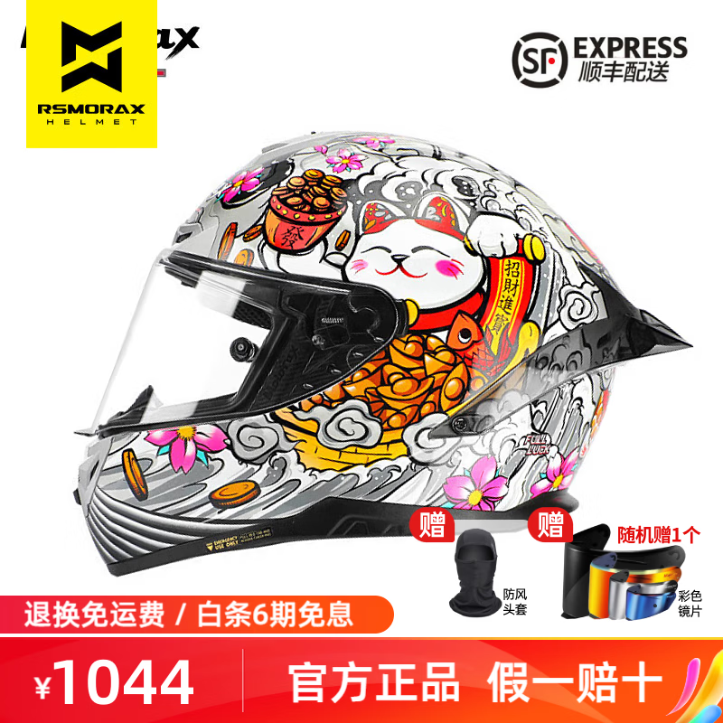 摩雷士MOTORAX RSMORAX R50S摩托车头盔全盔男女锦鲤天才机车四季通用 R50S 招财猫灰 XL(适合59CM-60CM)