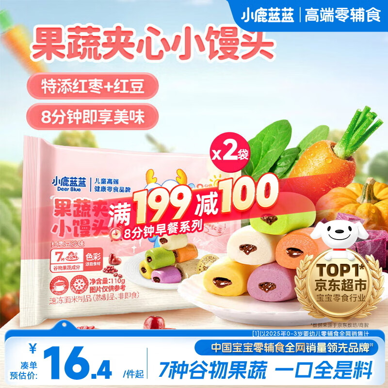 小鹿蓝蓝果蔬夹心小馒头 宝宝儿童早餐零食造型小馒头面点方便速食110*2
