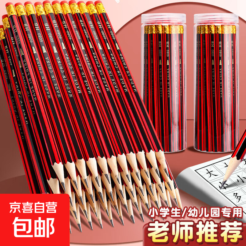 开学必备【2B】经典红杆铅笔经典红黑抽条 六角实木铅笔 学生书写美术素描绘图木质铅笔带橡皮擦 【买5送5】10支2B铅笔
