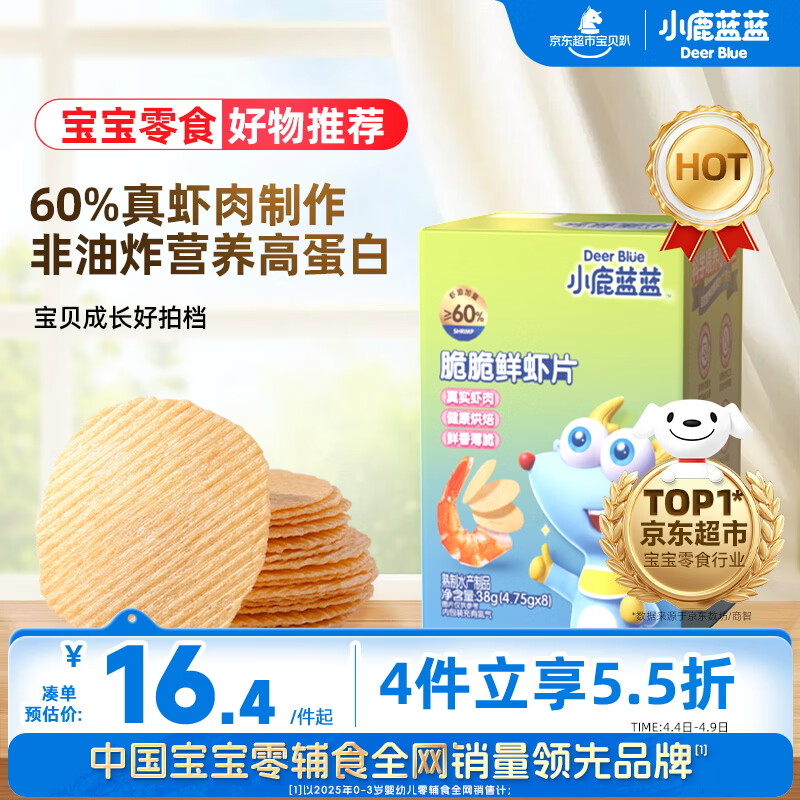 小鹿蓝蓝_宝宝鲜虾片 宝宝儿童零食12月+虾片饼干独立包装 38g