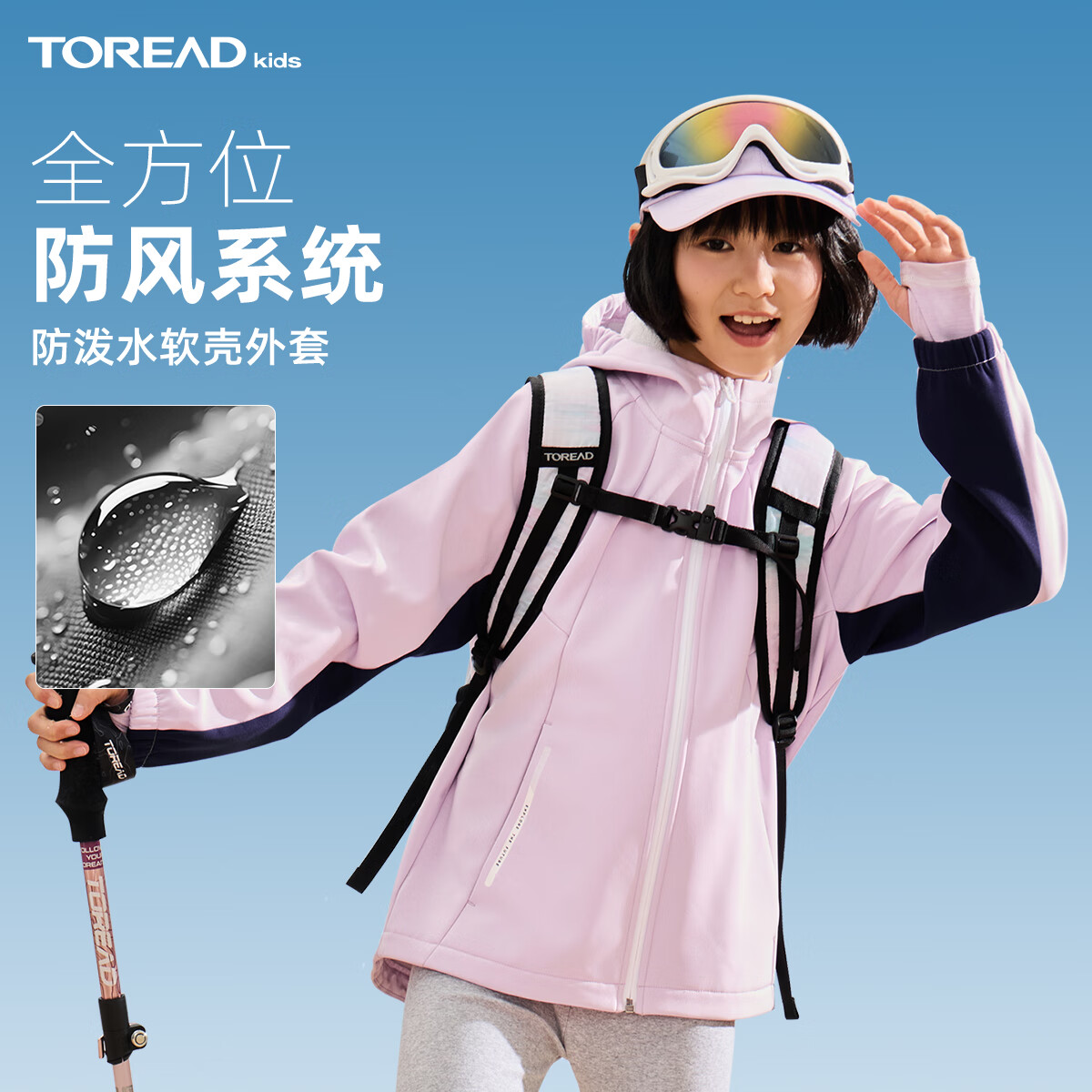 探路者(TOREAD)专款 儿童外套男女中大童装秋冬款保暖防风软壳运动服 柔光紫 140