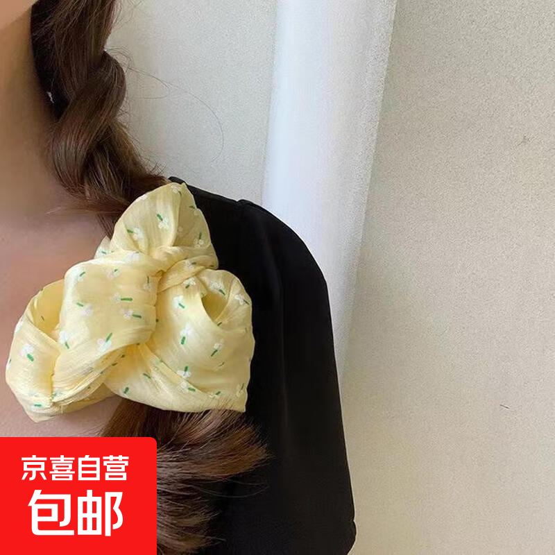 2025春夏新款黄色绸缎大肠发圈女花朵碎花马卡龙色儿童发绳盘发器 小仙女 蜜黄小仙女 蜜黄