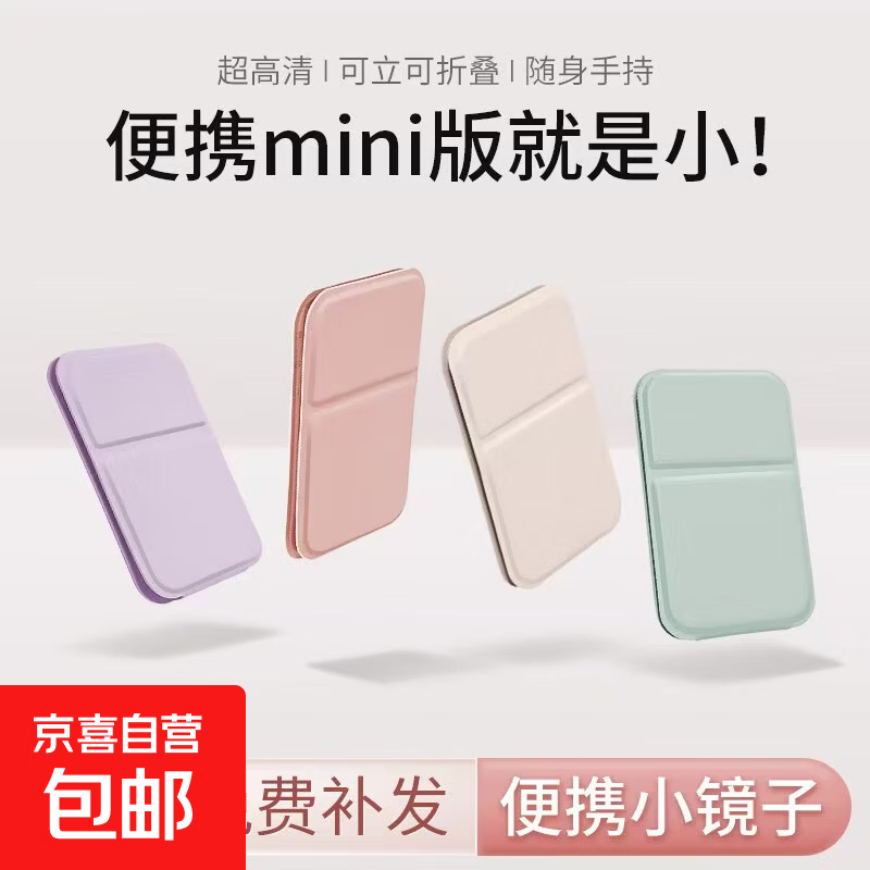全身镜穿衣镜迷你小镜子折叠镜便携式随身镜学生宿舍手持皮包镜 随机色1个(优惠装) 7*10cm