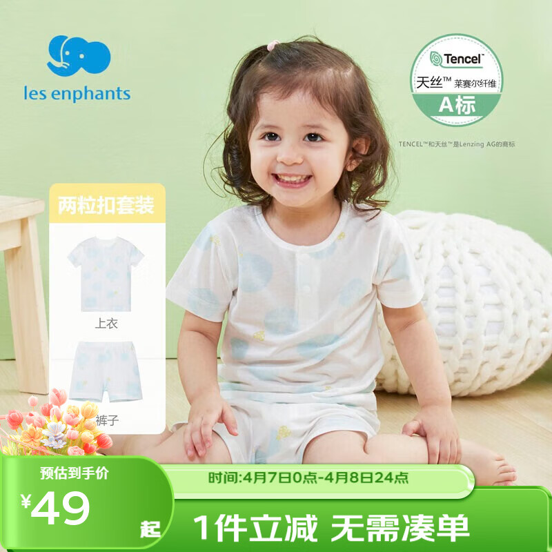 丽婴房(Les enphants)婴儿衣服儿童短袖睡衣套装宝宝两粒扣内衣套装夏天丝睡衣家居服 120 CM/6岁