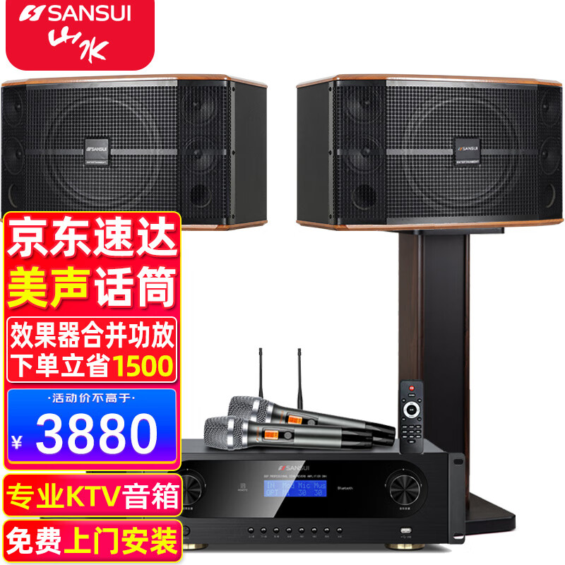 山水(SANSUI)FK-101 家庭K歌家用电视卡拉OK唱歌10寸12寸点唱一体机KTV客厅音响套装会议室卡包教学娱乐大音箱 FK101三分频10单元音响+功放+美声U段话筒