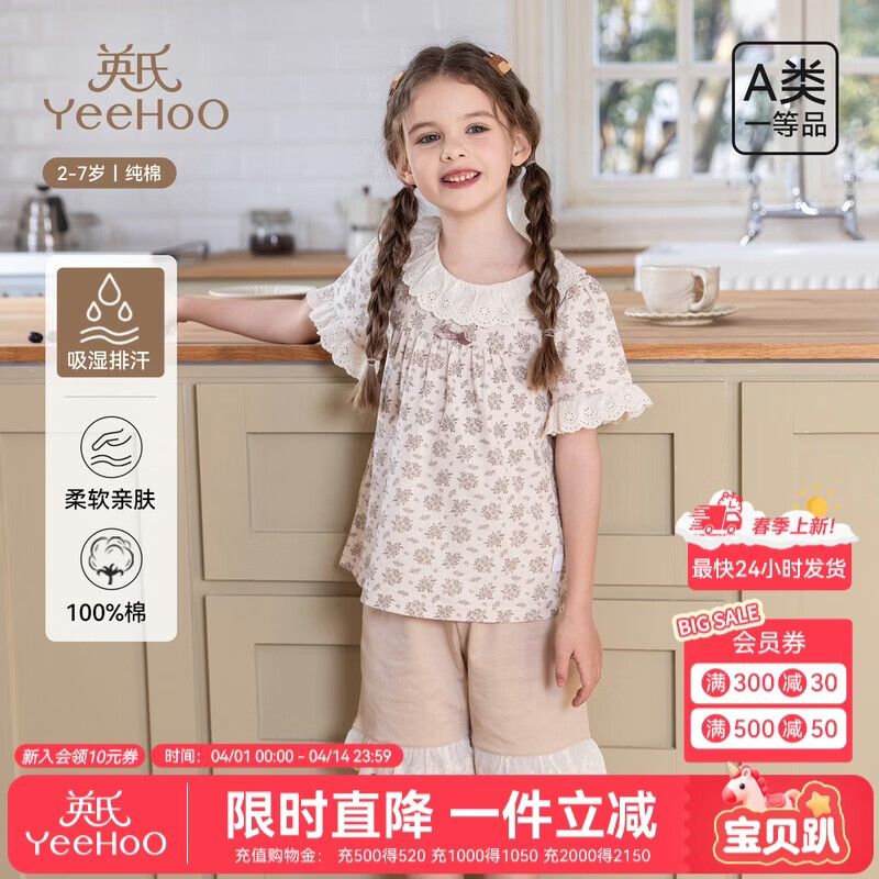 英氏(YEEHOO)儿童家居服套装男女童夏季【100%棉】2-7岁中小童宝宝分体式睡衣 浆果密语 120