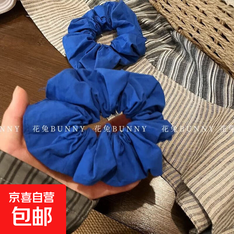 2025年夏季宝蓝色全棉质褶皱大肠发圈ins有调性发饰简洁清新头绳 蓝色【大号】大肠发圈
