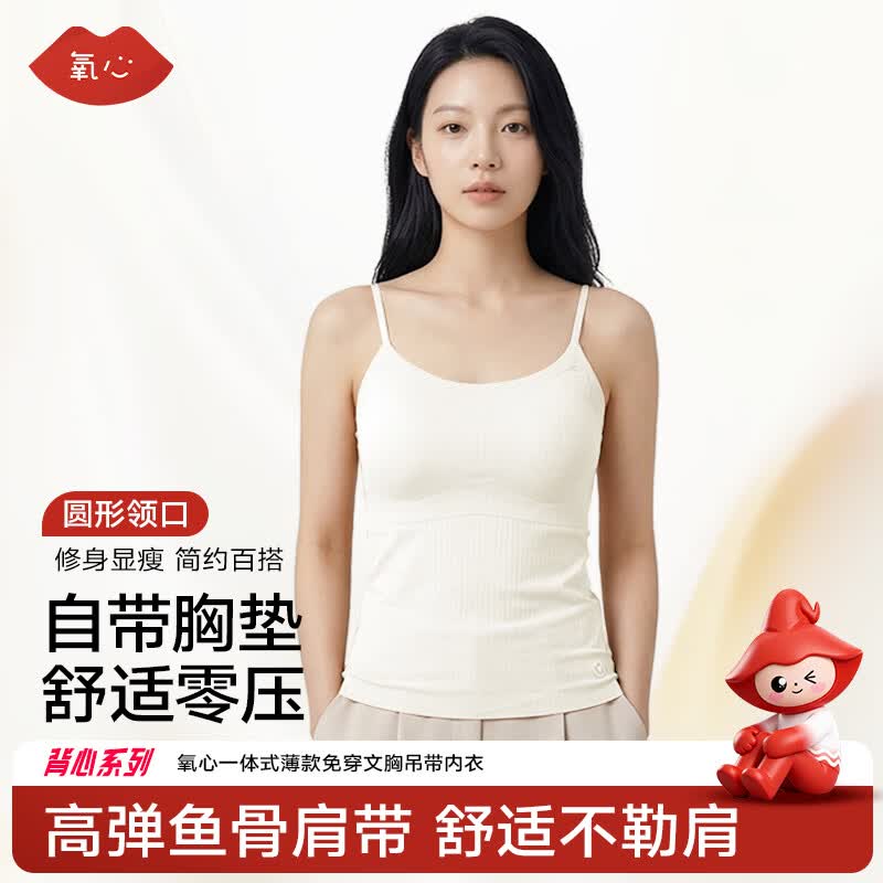 氧心(YANGXIN)夏季桑蚕丝轻薄吊带背心女一体杯舒适内搭打底衫百搭外穿吊带背心 香槟白 均码 (80-130斤)