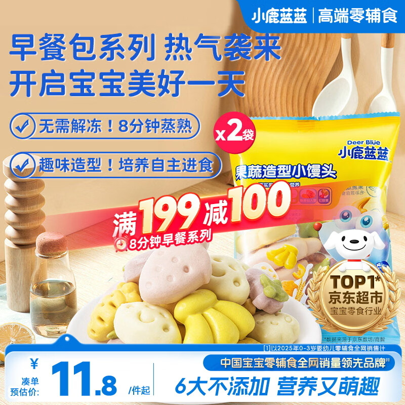 小鹿蓝蓝果蔬造型小馒头宝宝儿童早餐零食 包子新鲜面点馒头速食速冻80*2