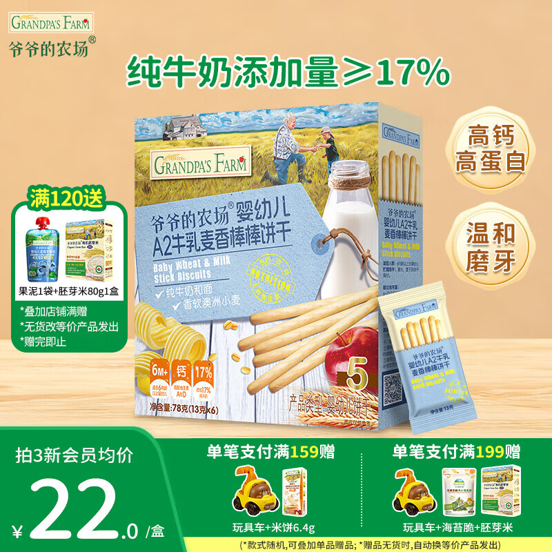 爷爷的农场儿童宝宝零食【129元任选7件】溶豆鳕鱼肠米饼干虾片海苔脆磨牙棒 【129任选7件】牛乳蛋香小馒头
