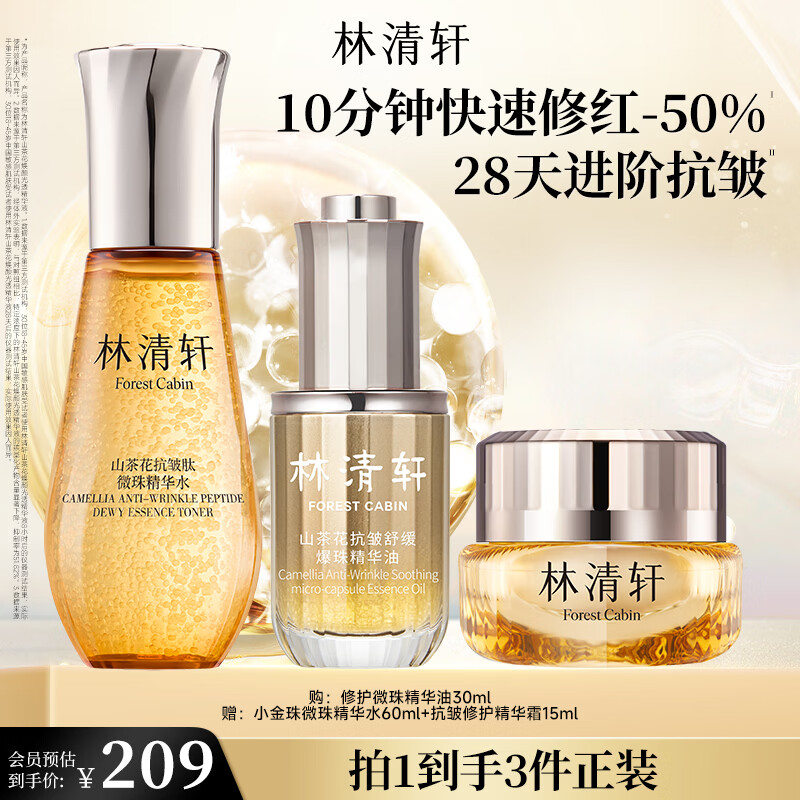 林清轩山茶花气泡油水霜3件套 抗皱补水保湿护肤品化妆品套装生日礼物