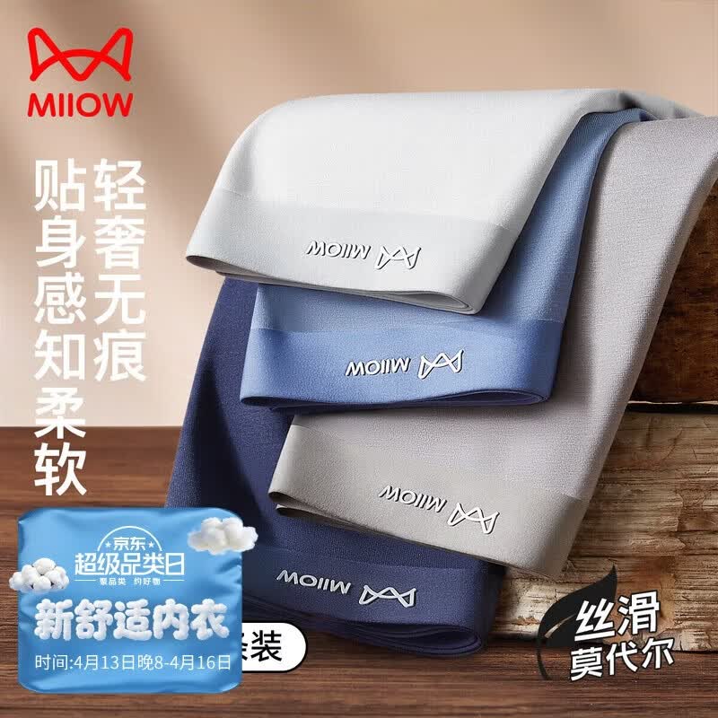 猫人莫代尔男士内裤男10A抗菌男生短裤头男式丝滑四角裤春夏3条装