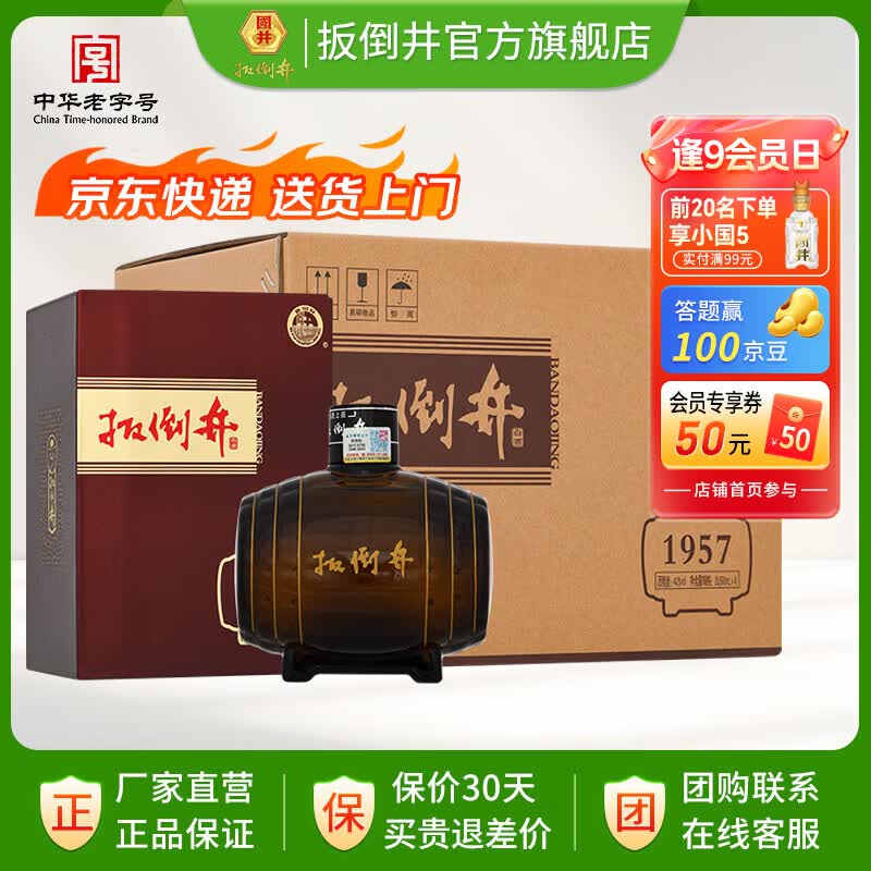 扳倒井白酒 1957建厂纪念酒 纯粮酿造浓香型礼盒装送礼自饮口粮白酒 52度 500mL 4瓶 (整箱搭配手提袋)