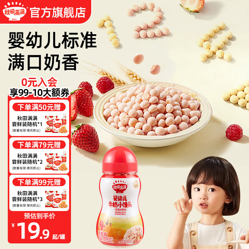 秋田满满婴幼儿小馒头 宝宝零食 不添加白砂糖小馒头 享婴幼儿辅食谱 【1罐】草莓树莓味86g