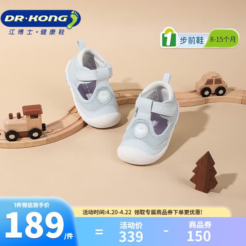 江博士春夏魔术贴男女宝宝软底透气步前鞋婴儿鞋 简约舒适凉鞋幼儿童鞋 蓝色 21 脚长约12.0-12.6