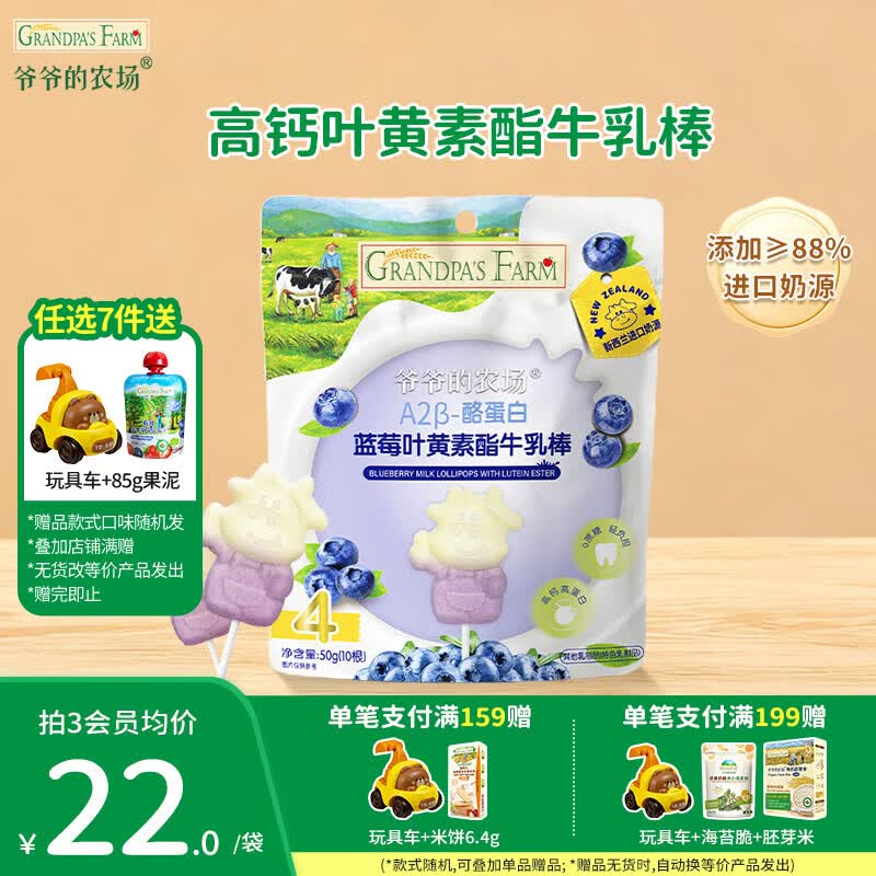 爷爷的农场儿童宝宝零食【129元任选7件】溶豆鳕鱼肠米饼干虾片海苔脆磨牙棒 【129任选7件】蓝莓叶黄素酯牛乳棒