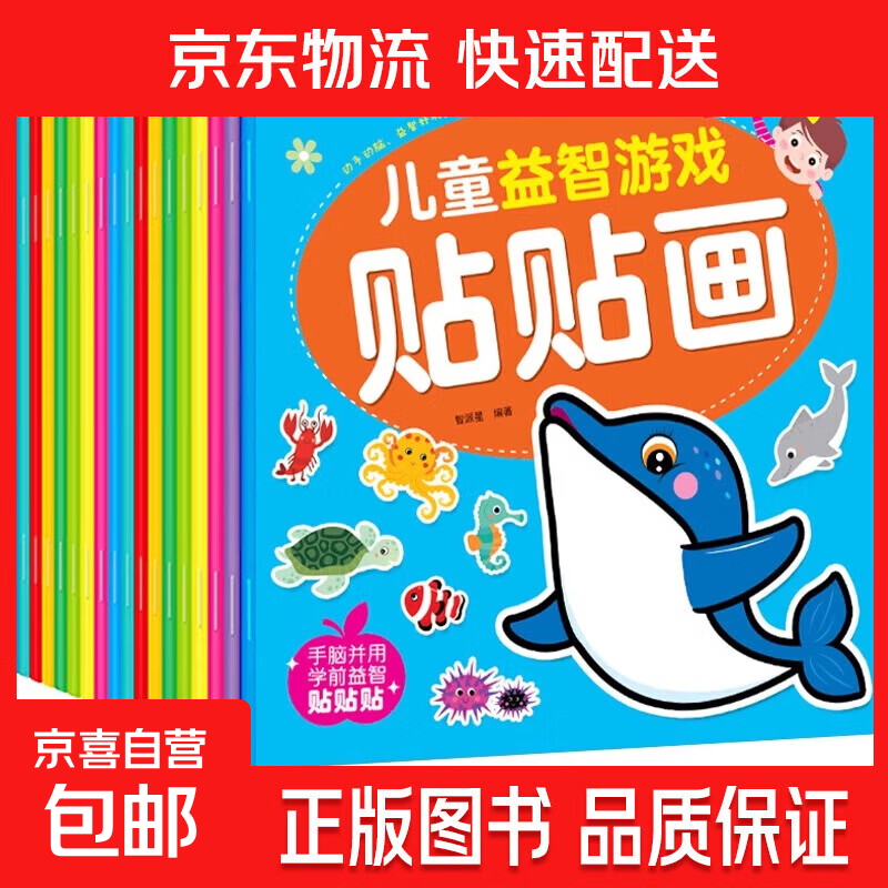 儿童左右脑专注力训练贴纸书幼儿早教启蒙游戏0到3-6岁宝宝粘贴画 儿童益智游戏贴贴画随机1本 无规格