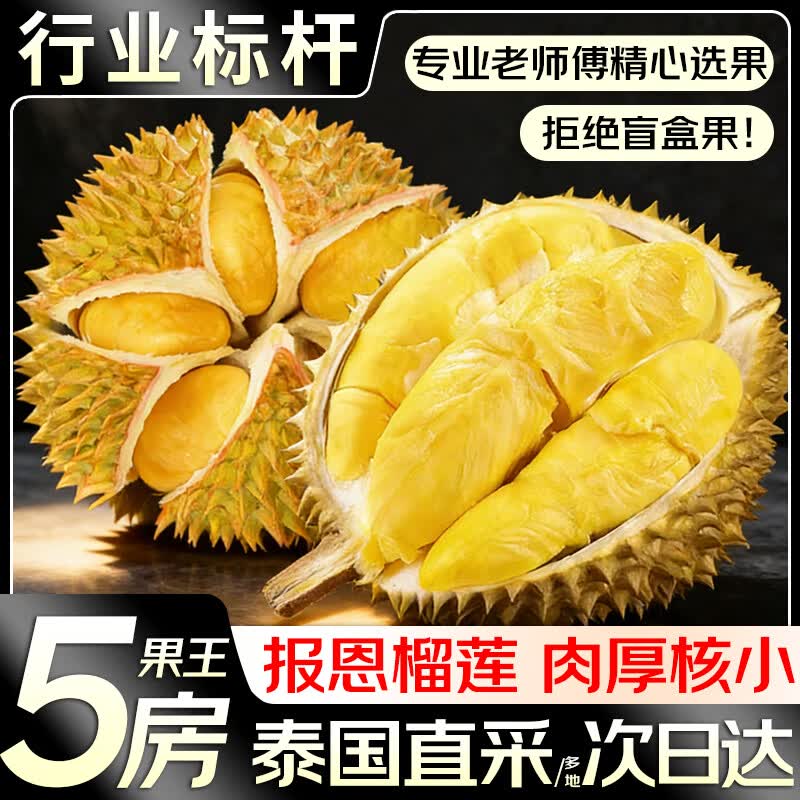 梓颐泰国金枕榴莲新鲜果整箱长柄榴莲金枕头进口A果整个带壳热带水果 精选果净重2-3斤(包3-5房)