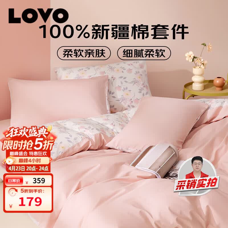 LOVO罗莱家纺 全棉四件套100%纯棉床单被套双人床上用品200*230cm