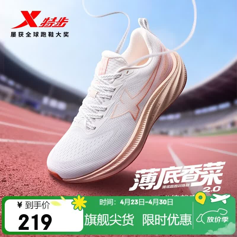 特步薄底香菜二代运动鞋女减震防滑透气运动鞋夏季宽楦竞训跑步女鞋