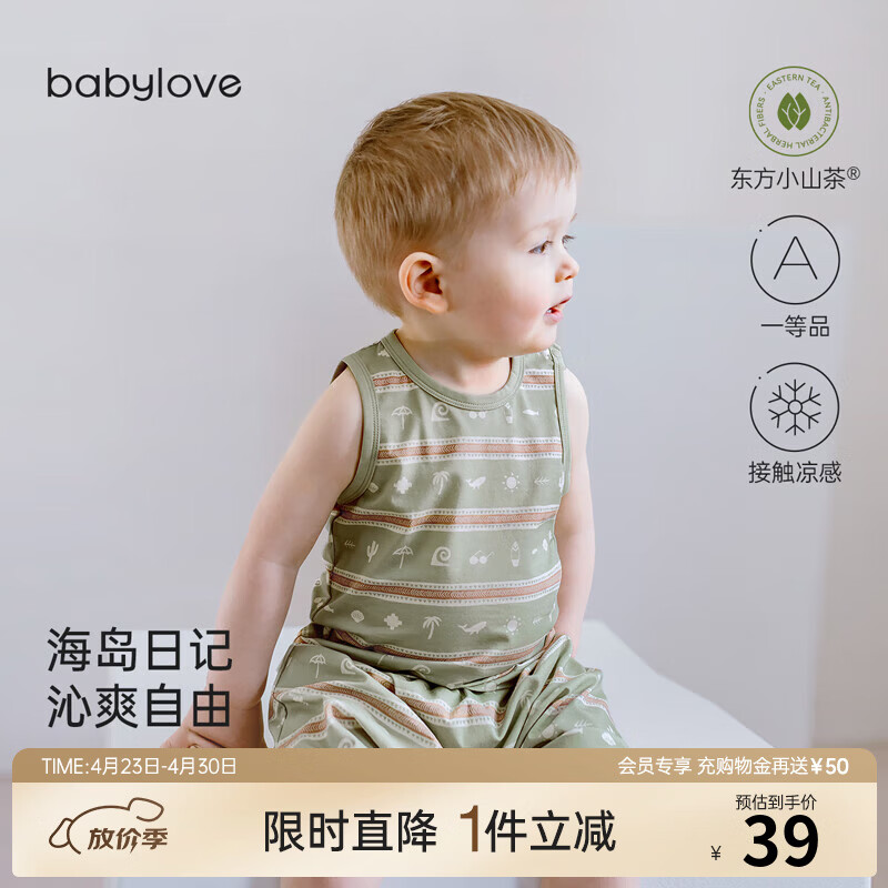 babylove【清仓】婴幼儿背心夏季薄款吸湿排汗莫代尔棉宝宝无袖上衣衣服 海岛日记 80